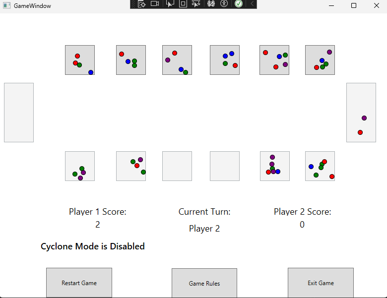 - Collaboratively developed a playable Mancala game